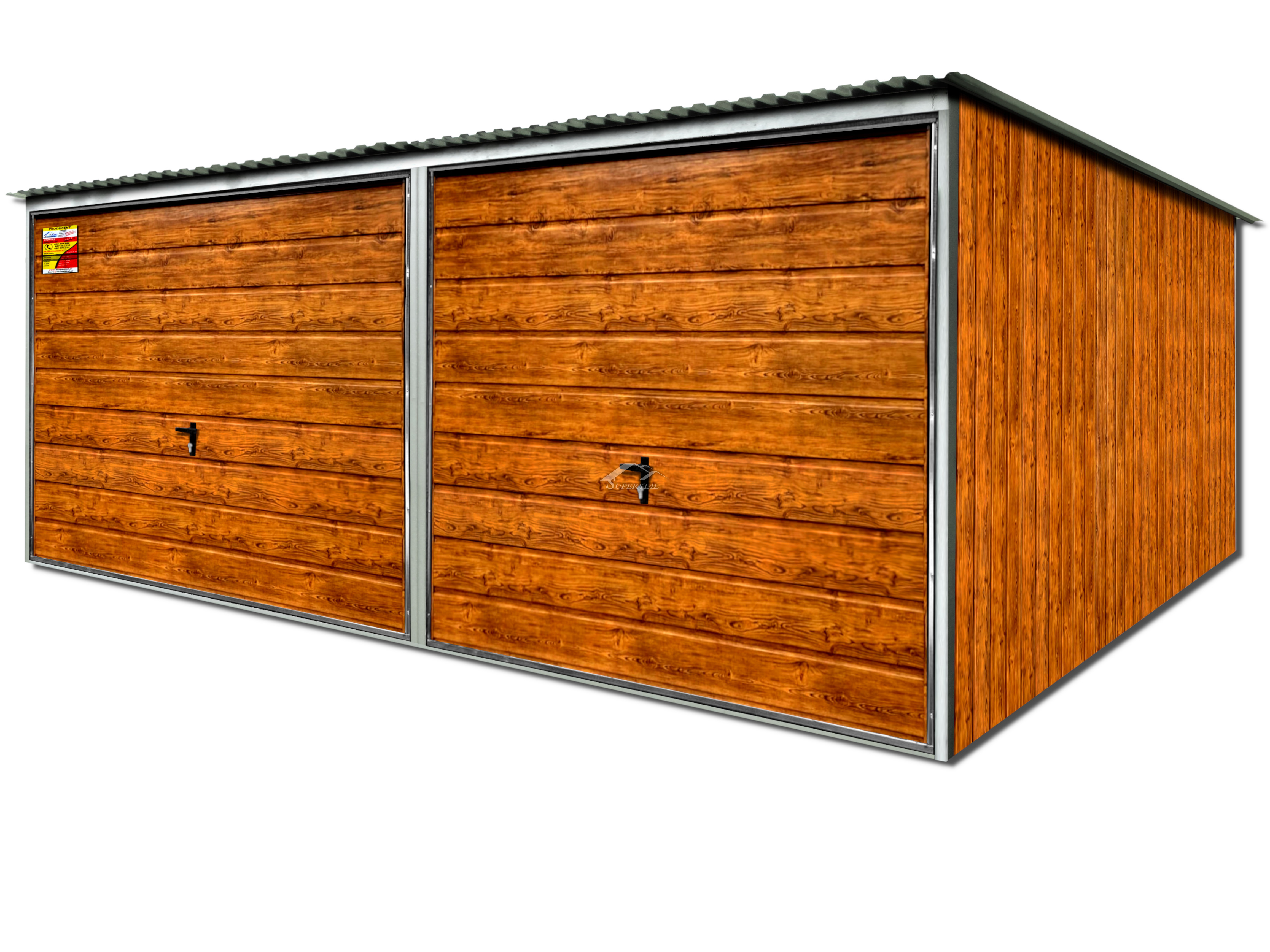 - ściany oraz bramy pokryte blachą w kolorze drewnopodobnym – ZŁOTY DĄB