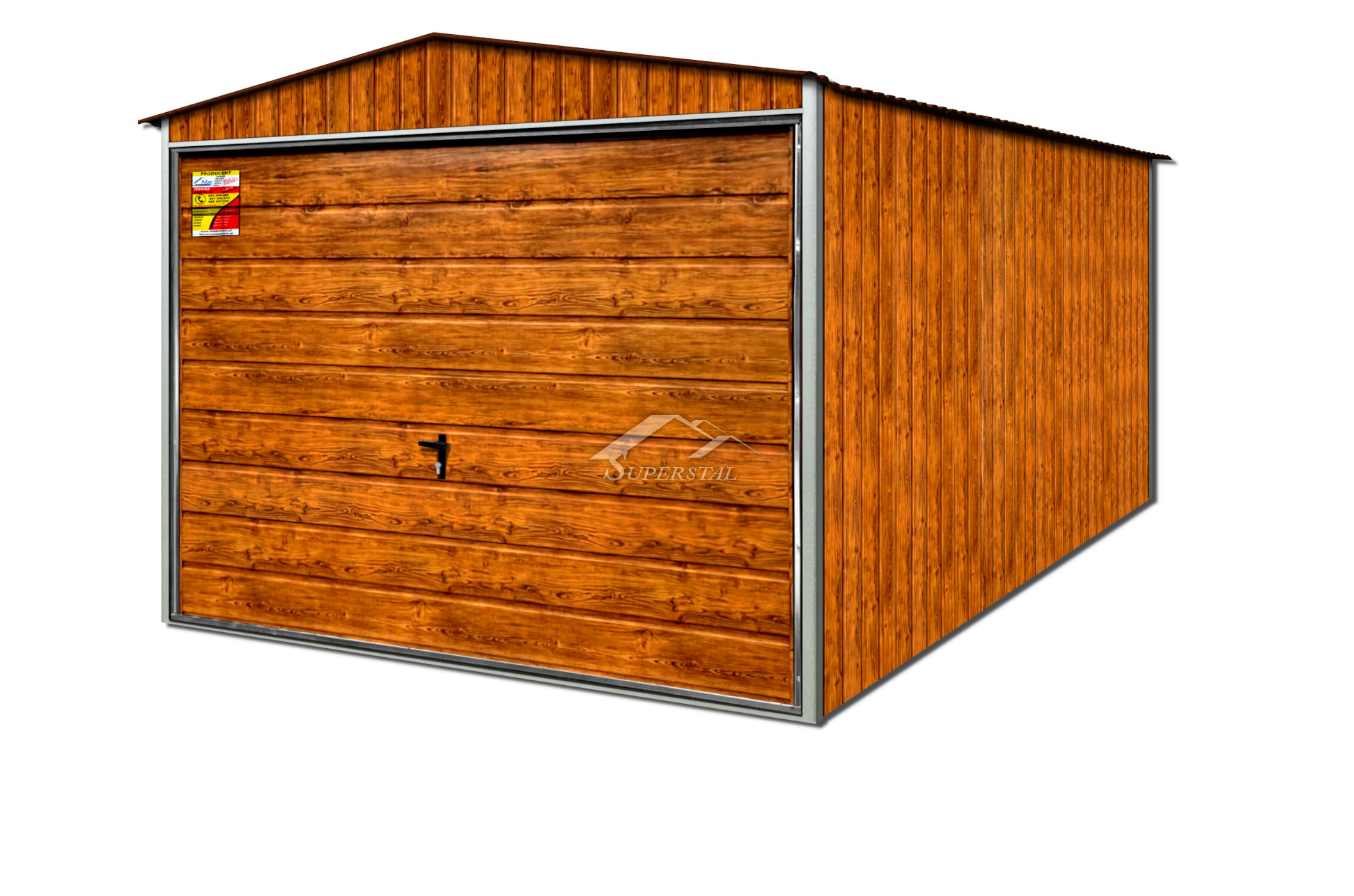 - ściany oraz brama pokryte blachą w kolorze drewnopodobnym – ZŁOTY DĄB