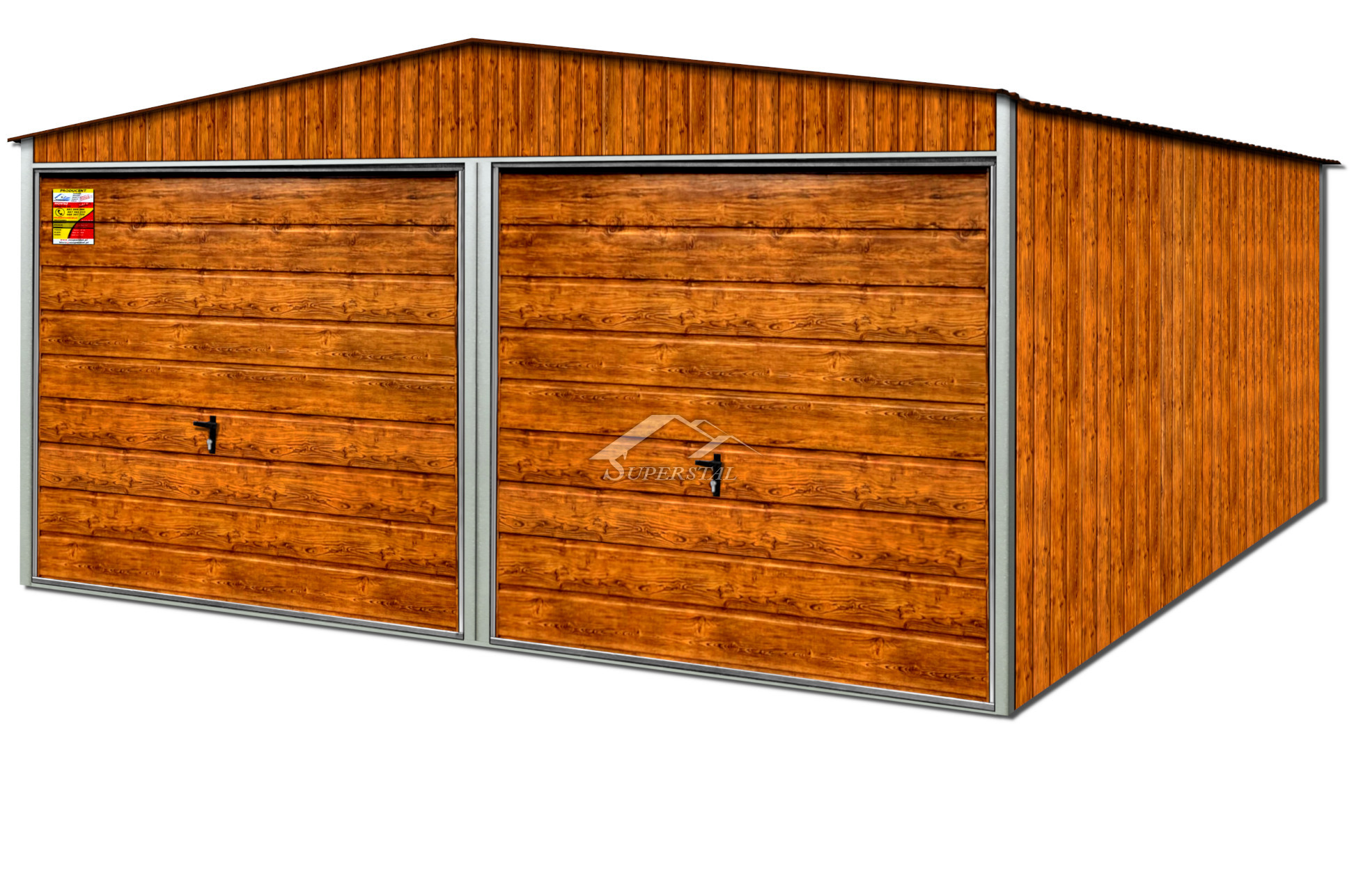 - ściany oraz brama pokryte blachą w kolorze drewnopodobnym – ZŁOTY DĄB