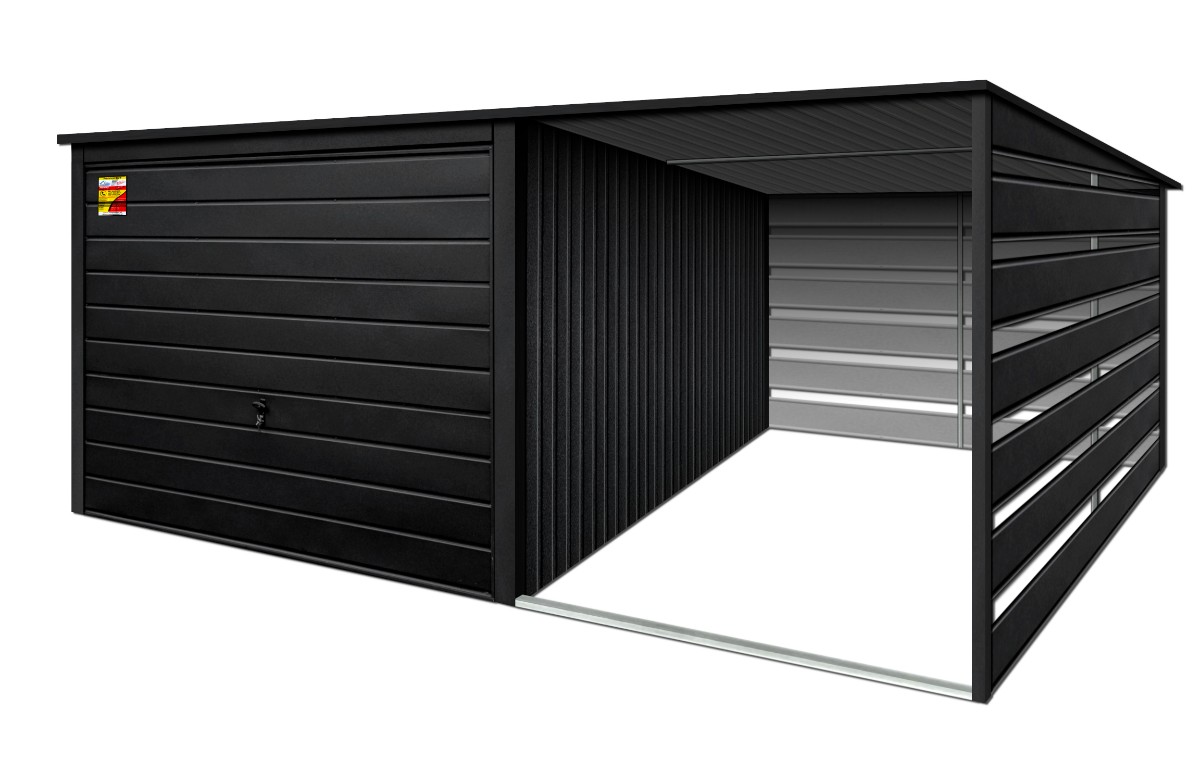 Oferowanym produktem jest innowacyjny garaż blaszany z serii LUX, wzbogacony w dobudowaną wiatę, wykonaną w nowoczesnym Systemie SMK!