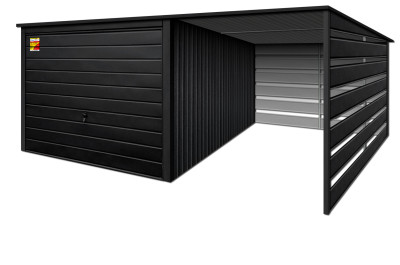 Oferowanym produktem jest innowacyjny garaż blaszany z serii LUX, wzbogacony w dobudowaną wiatę, wykonaną w nowoczesnym Systemie SMK!