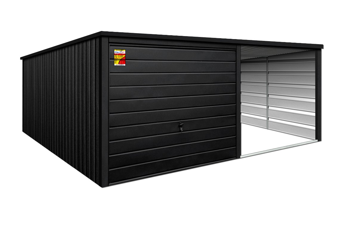Oferowanym produktem jest innowacyjny garaż blaszany z serii LUX, wzbogacony w dobudowaną wiatę, wykonaną w nowoczesnym Systemie SMK!