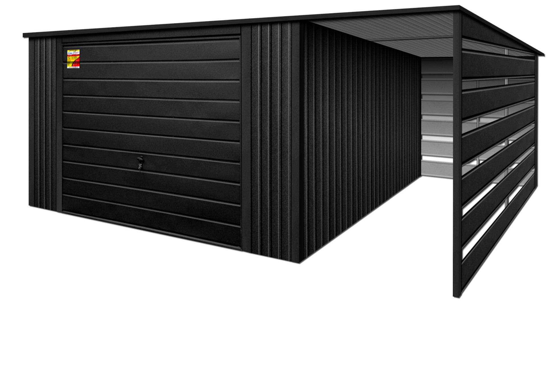 Oferowanym produktem jest innowacyjny garaż blaszany z serii LUX, wzbogacony w dobudowaną wiatę, wykonaną w nowoczesnym Systemie SMK!