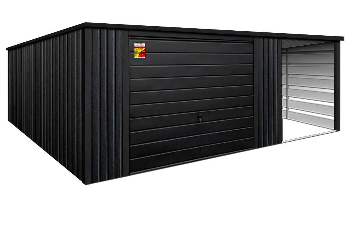 Oferowanym produktem jest innowacyjny garaż blaszany z serii LUX, wzbogacony w dobudowaną wiatę, wykonaną w nowoczesnym Systemie SMK!