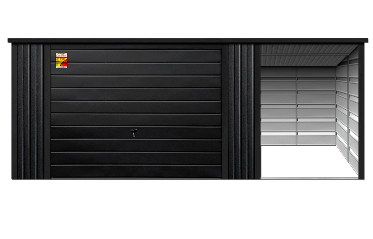 Oferowanym produktem jest innowacyjny garaż blaszany z serii LUX, wzbogacony w dobudowaną wiatę, wykonaną w nowoczesnym Systemie SMK!