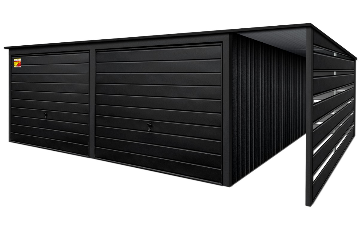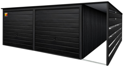 Oferowanym produktem jest innowacyjny garaż blaszany z serii LUX, wzbogacony w dobudowaną wiatę, wykonaną w nowoczesnym Systemie SMK!