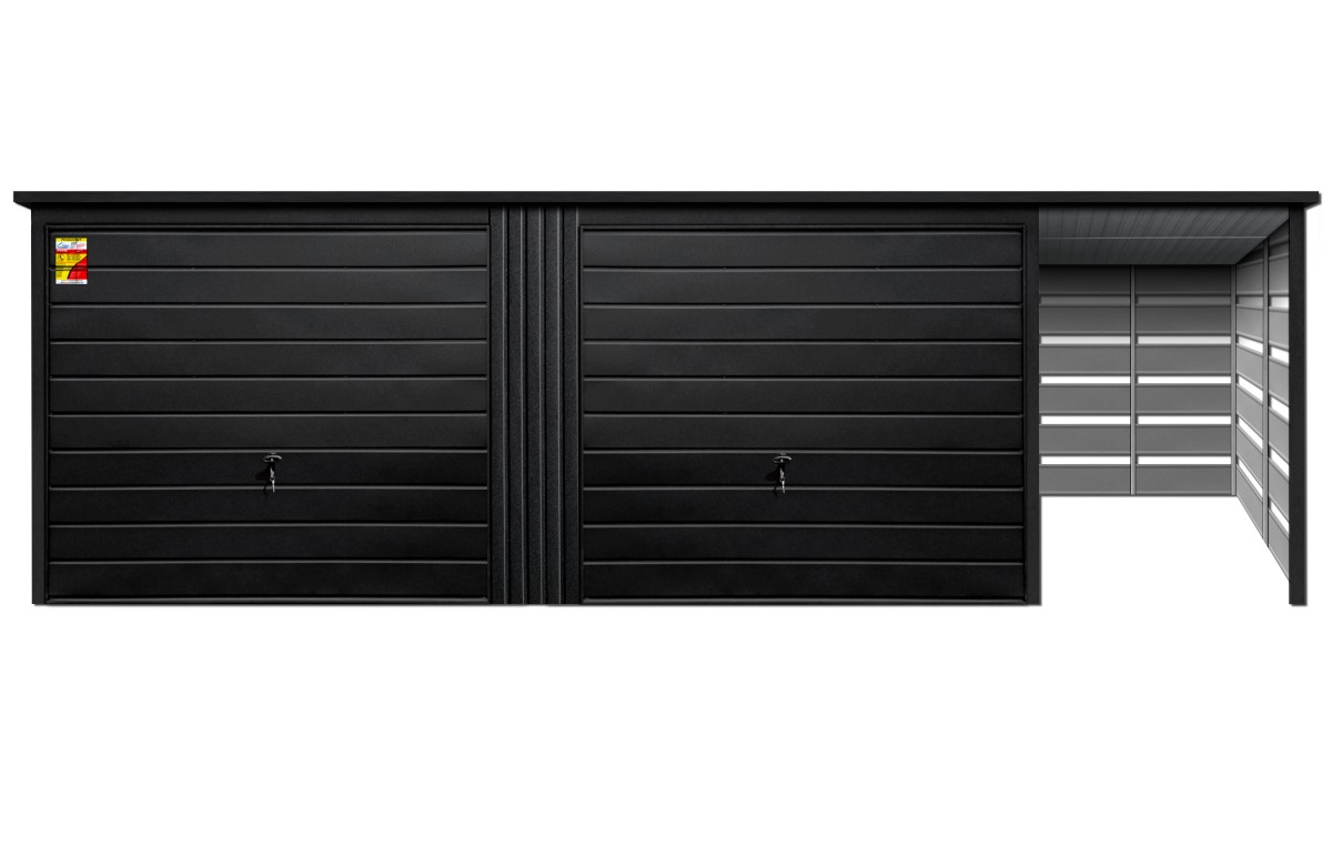 Oferowanym produktem jest innowacyjny garaż blaszany z serii LUX, wzbogacony w dobudowaną wiatę, wykonaną w nowoczesnym Systemie SMK!