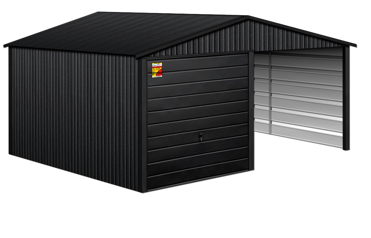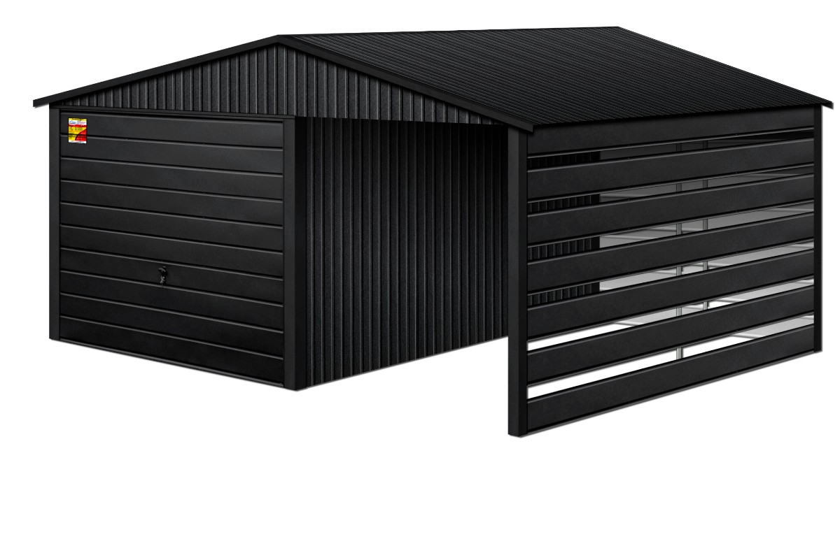 Oferowanym produktem jest innowacyjny garaż blaszany z serii LUX, wzbogacony w dobudowaną wiatę, wykonaną w nowoczesnym Systemie SMK!