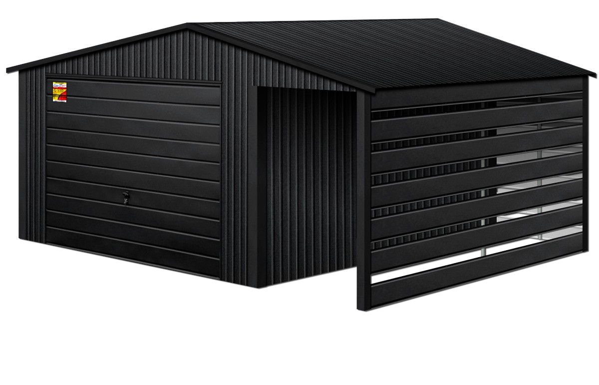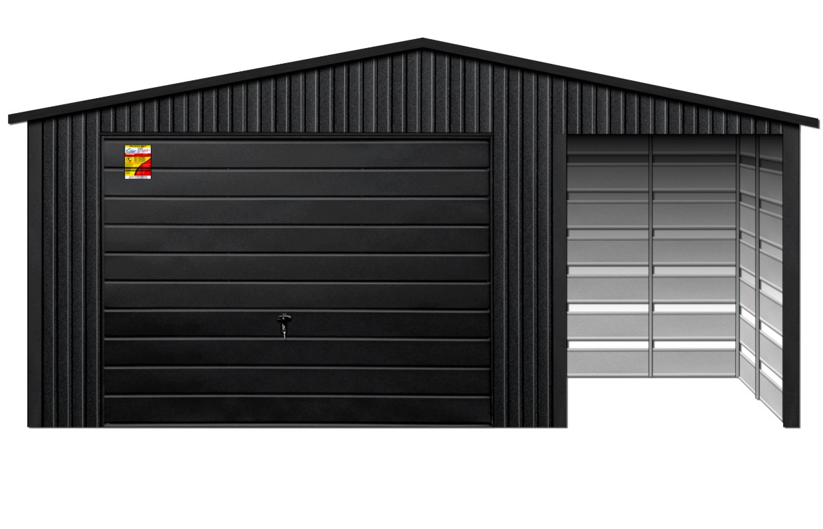 Oferowanym produktem jest innowacyjny garaż blaszany z serii LUX, wzbogacony w dobudowaną wiatę, wykonaną w nowoczesnym Systemie SMK!