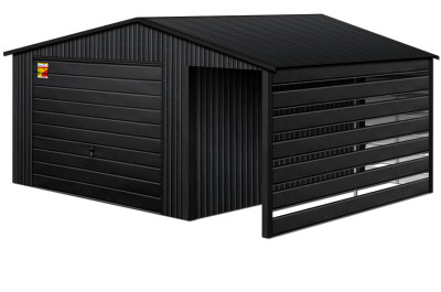 Oferowanym produktem jest innowacyjny garaż blaszany z serii LUX, wzbogacony w dobudowaną wiatę, wykonaną w nowoczesnym Systemie SMK!