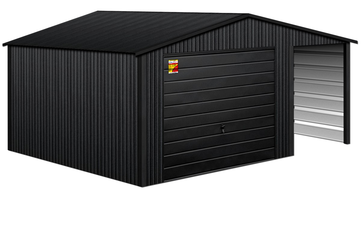 Oferowanym produktem jest innowacyjny garaż blaszany z serii LUX, wzbogacony w dobudowaną wiatę, wykonaną w nowoczesnym Systemie SMK!