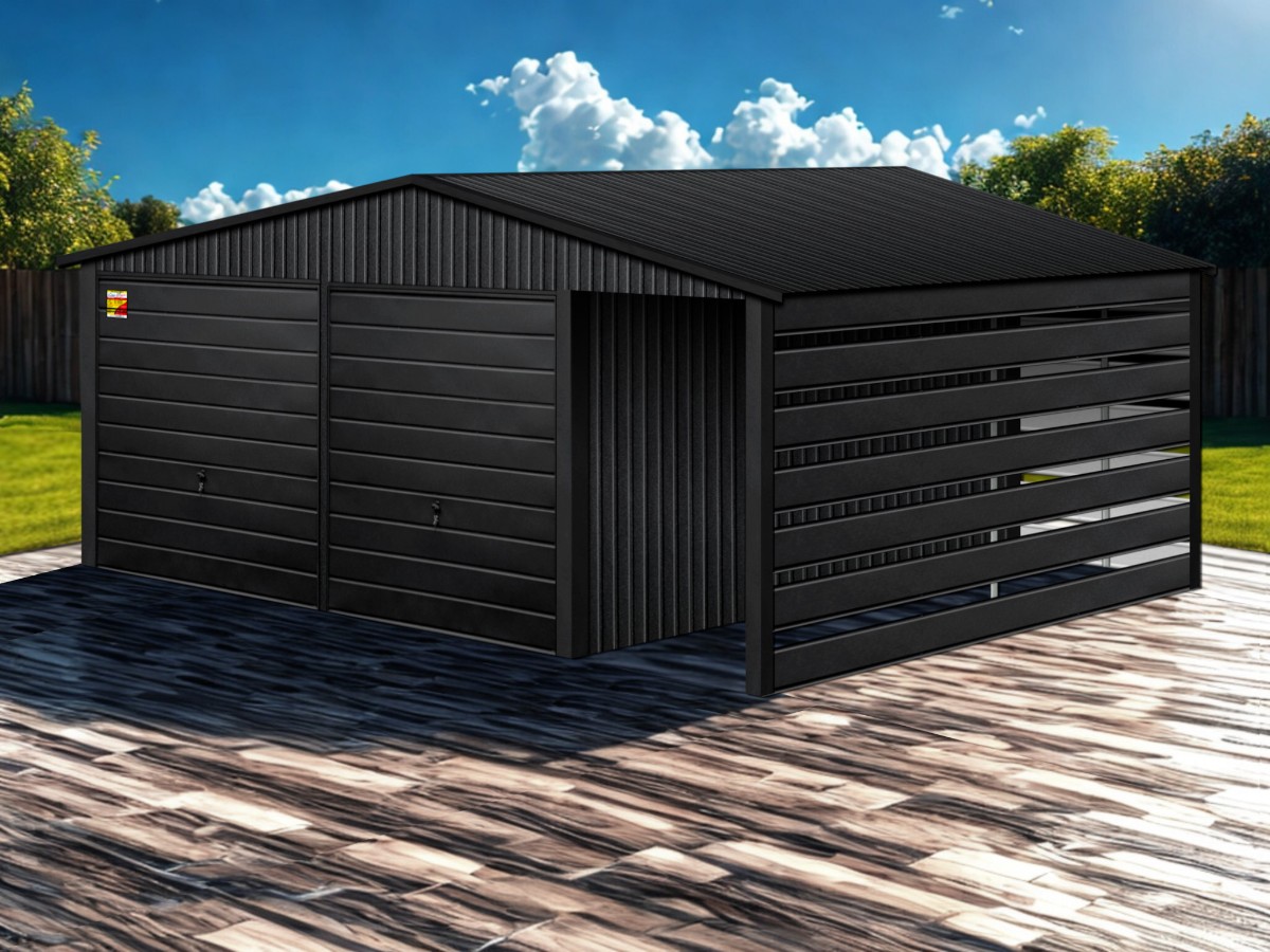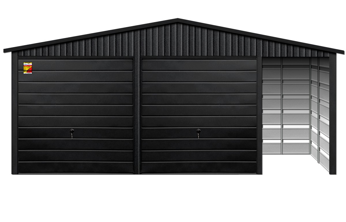 Oferowanym produktem jest innowacyjny garaż blaszany z serii LUX, wzbogacony w dobudowaną wiatę, wykonaną w nowoczesnym Systemie SMK!