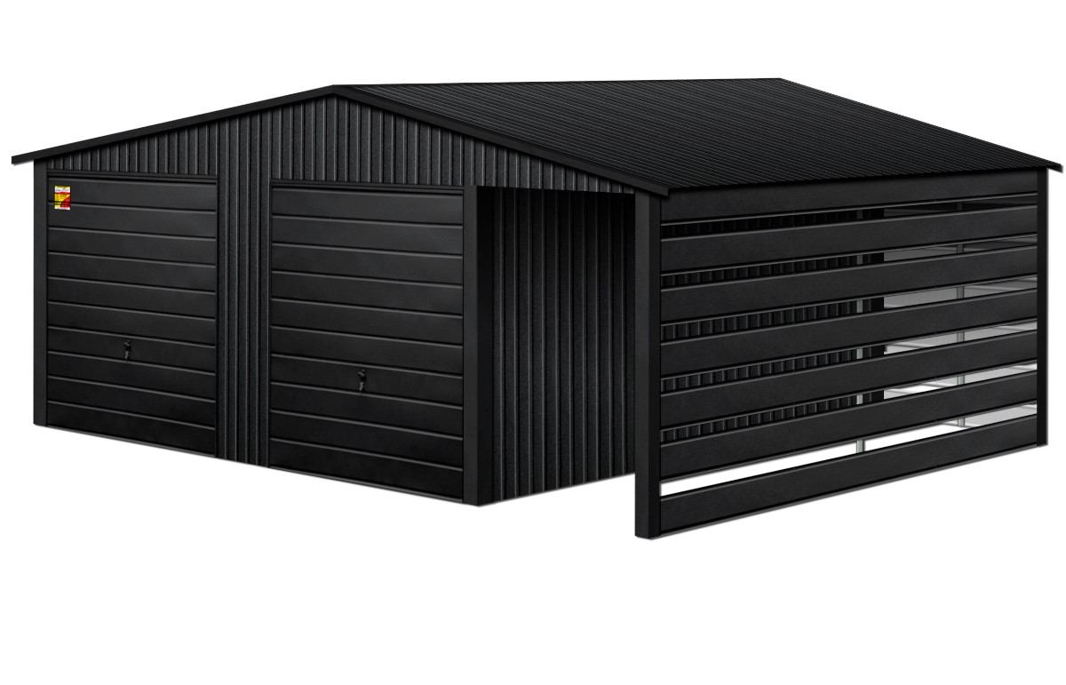 Oferowanym produktem jest innowacyjny garaż blaszany z serii LUX, wzbogacony w dobudowaną wiatę, wykonaną w nowoczesnym Systemie SMK!