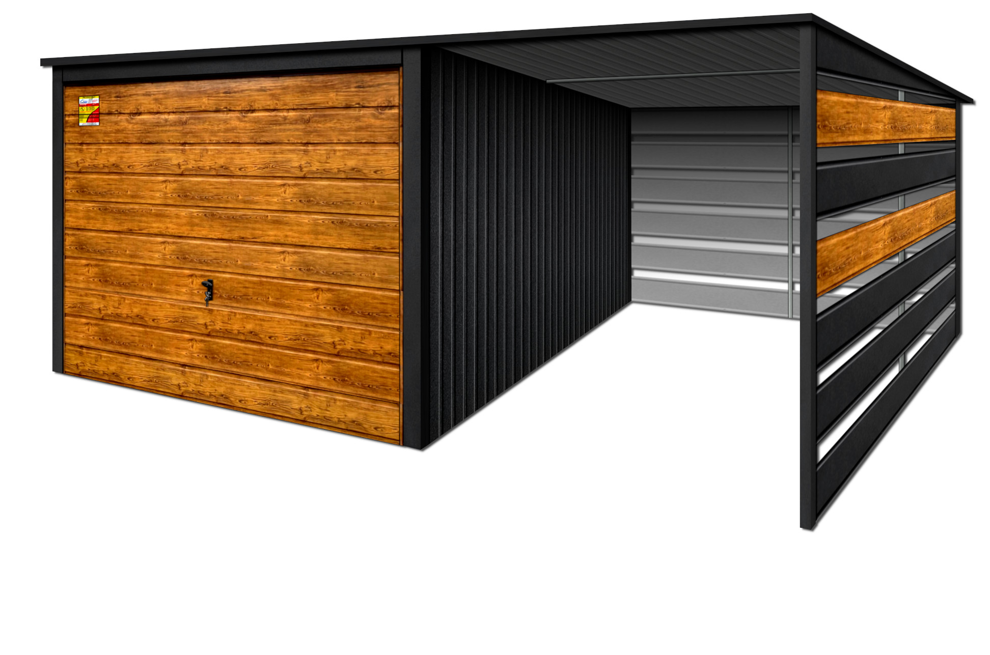 Jako zaufany producent konstrukcji stalowych zapewnimy możliwość konfiguracji garażu wedle własnych upodobań - dopasowanie wymiarów konstrukcji do własnych potrzeb, dobór indywidualnej wersji kolorystycznej - szeroki wachlarz kolorów, w tym również drewnopodobne i wiele więcej!
