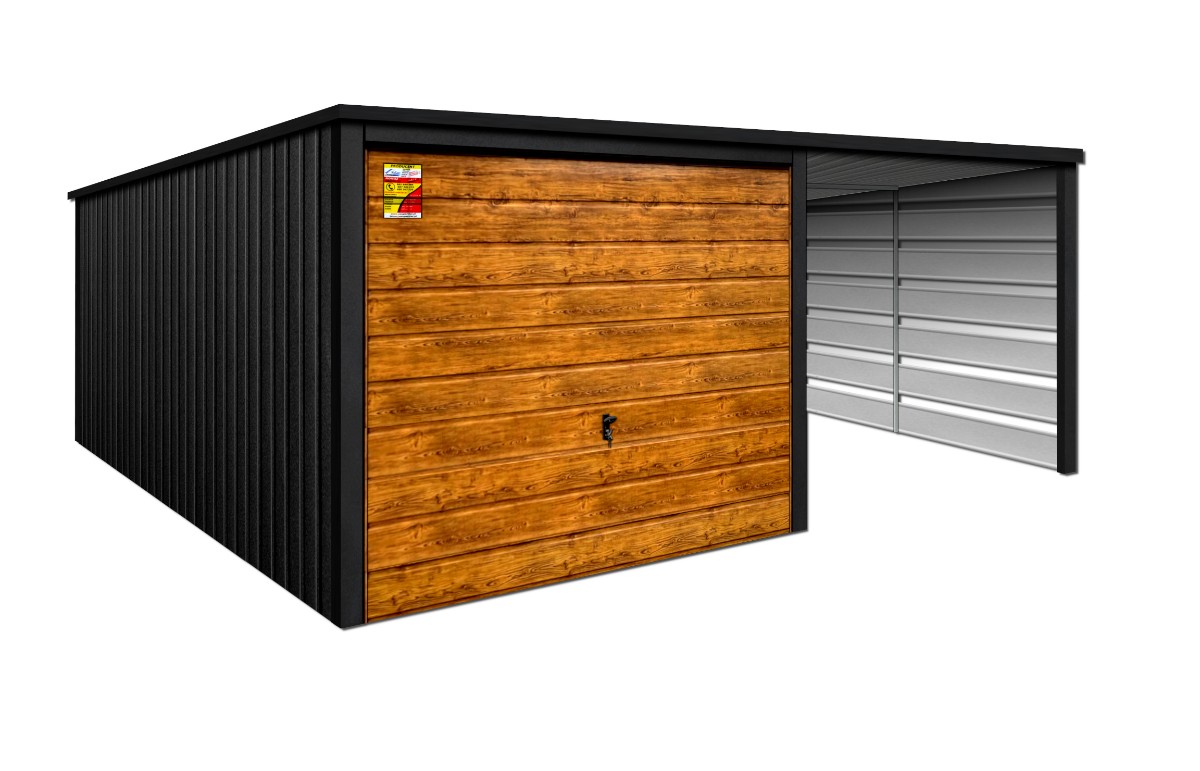 Oferowanym produktem jest innowacyjny garaż blaszany z serii LUX, wzbogacony w dobudowaną wiatę, wykonaną w nowoczesnym Systemie SMK!