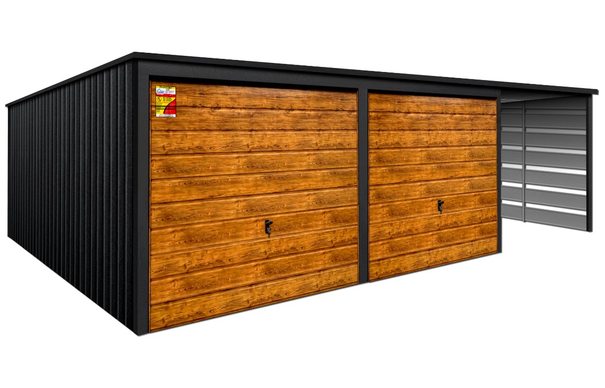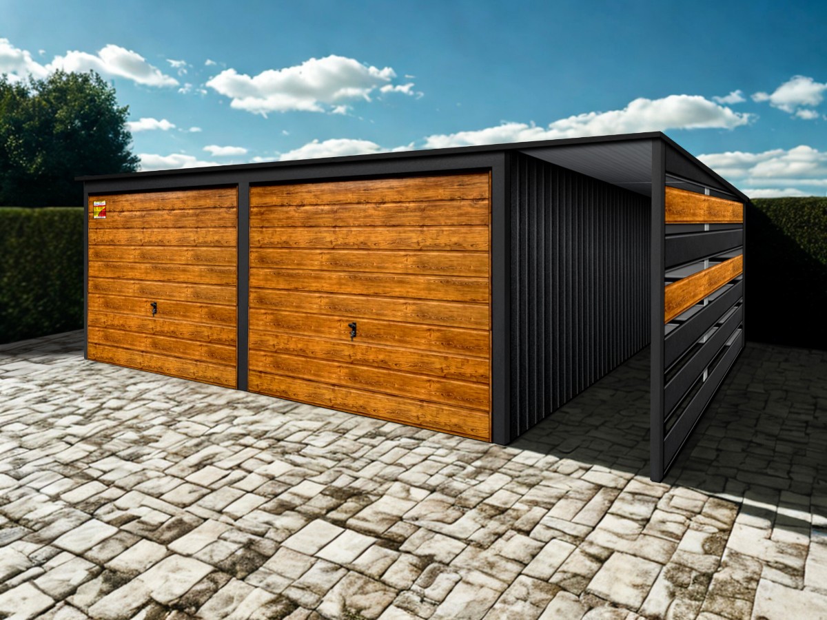 Oferowanym produktem jest innowacyjny garaż blaszany z serii LUX, wzbogacony w dobudowaną wiatę, wykonaną w nowoczesnym Systemie SMK!