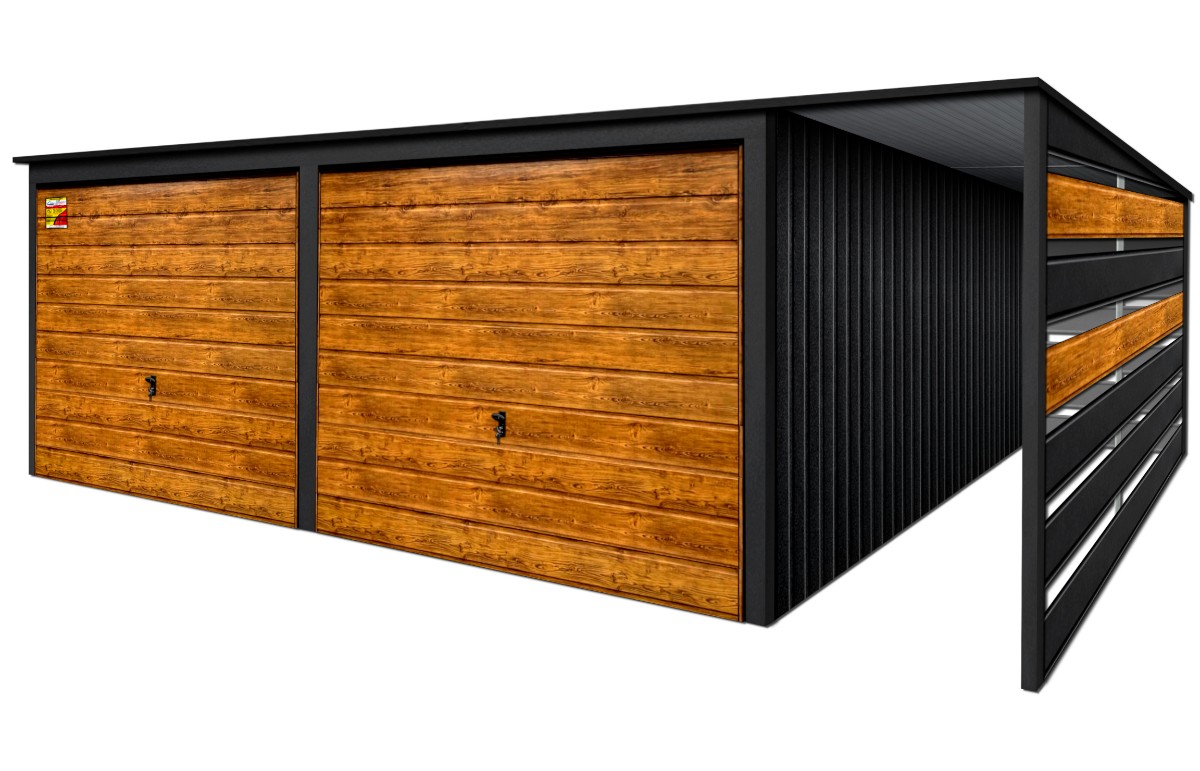 Oferowanym produktem jest innowacyjny garaż blaszany z serii LUX, wzbogacony w dobudowaną wiatę, wykonaną w nowoczesnym Systemie SMK!