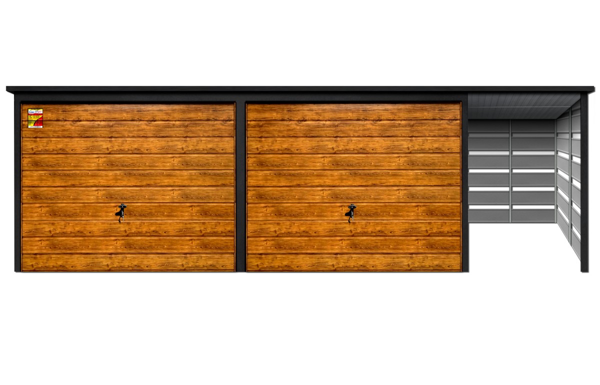 Oferowanym produktem jest innowacyjny garaż blaszany z serii LUX, wzbogacony w dobudowaną wiatę, wykonaną w nowoczesnym Systemie SMK!