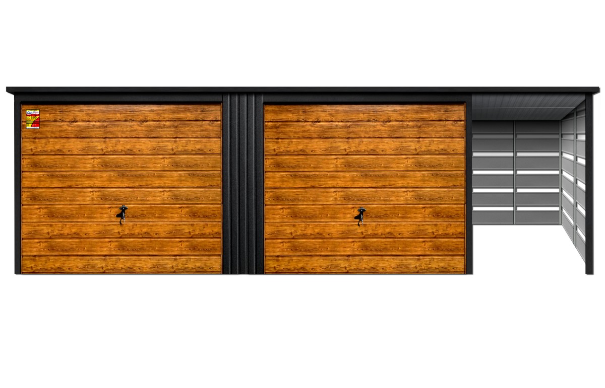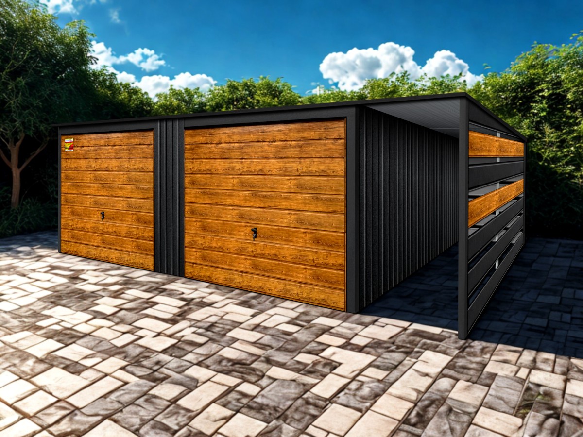 Oferowanym produktem jest innowacyjny garaż blaszany z serii LUX, wzbogacony w dobudowaną wiatę, wykonaną w nowoczesnym Systemie SMK!