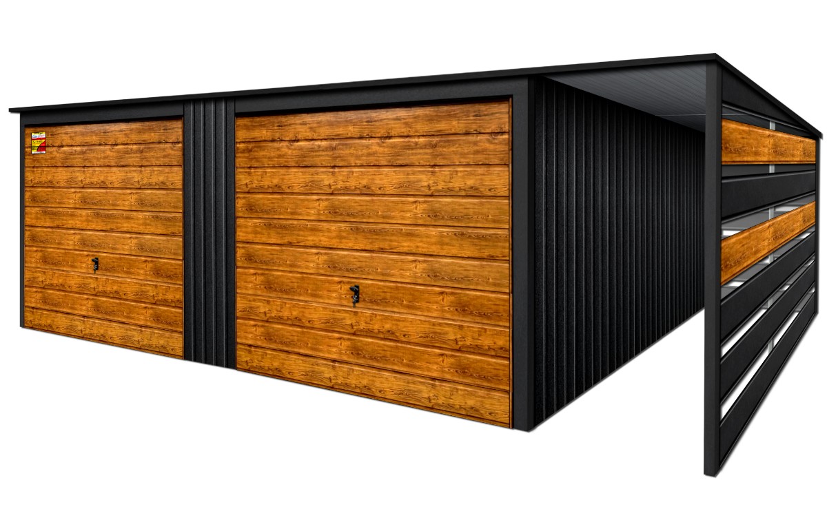 Oferowanym produktem jest innowacyjny garaż blaszany z serii LUX, wzbogacony w dobudowaną wiatę, wykonaną w nowoczesnym Systemie SMK!