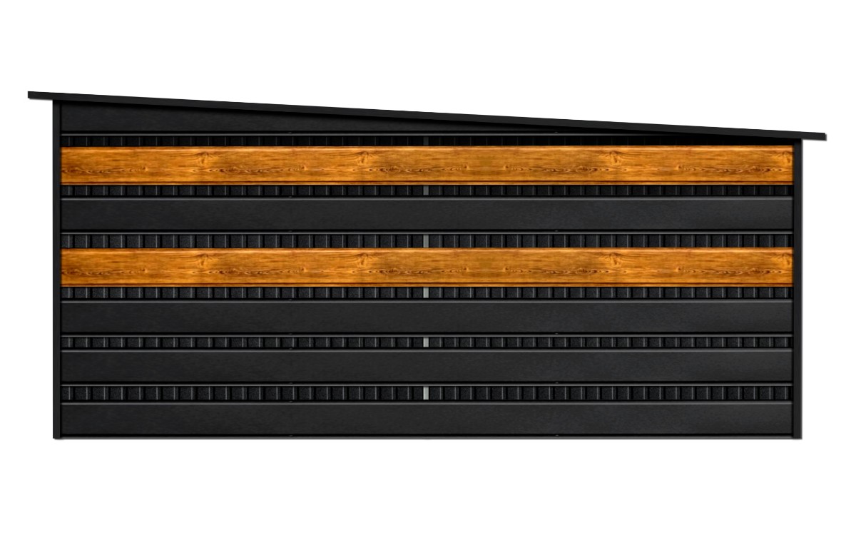 - panele wiaty w Systemie SMK w kolorze CZARNY MAT + 2 pasy paneli w kolorze drewnopodobnym SOSNA