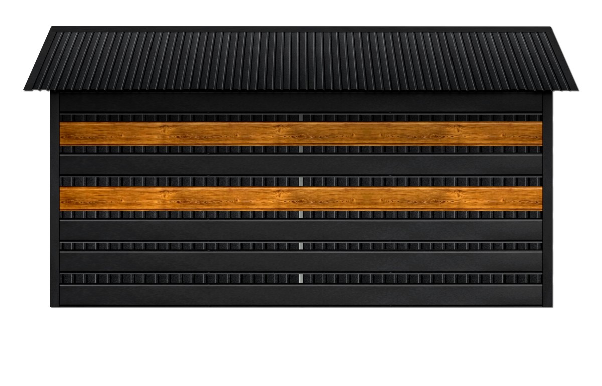 - panele wiaty w Systemie SMK w kolorze CZARNY MAT + 2 pasy paneli w kolorze drewnopodobnym SOSNA