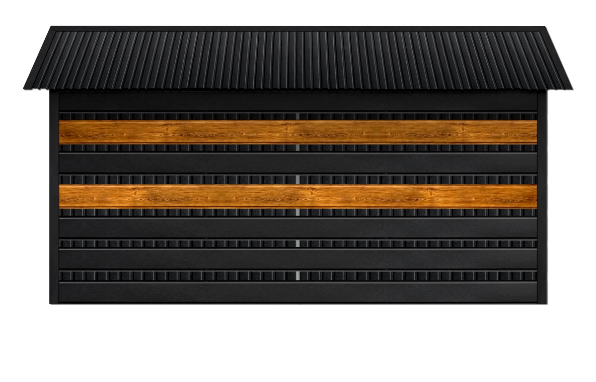 - panele wiaty w Systemie SMK w kolorze CZARNY MAT + 2 pasy paneli w kolorze drewnopodobnym SOSNA