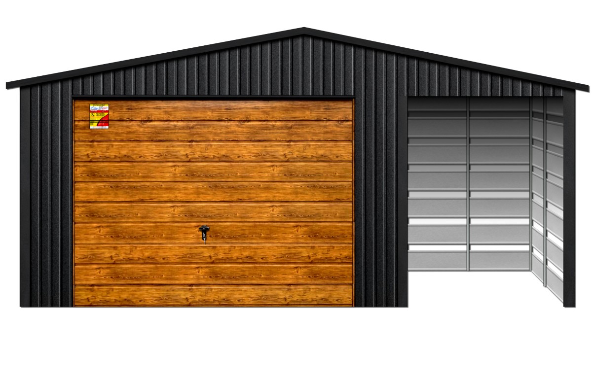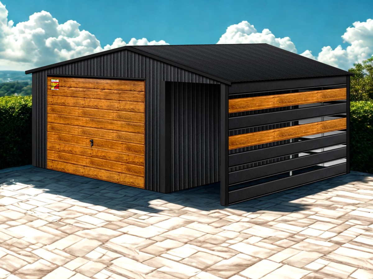 Oferowanym produktem jest innowacyjny garaż blaszany z serii LUX, wzbogacony w dobudowaną wiatę, wykonaną w nowoczesnym Systemie SMK!