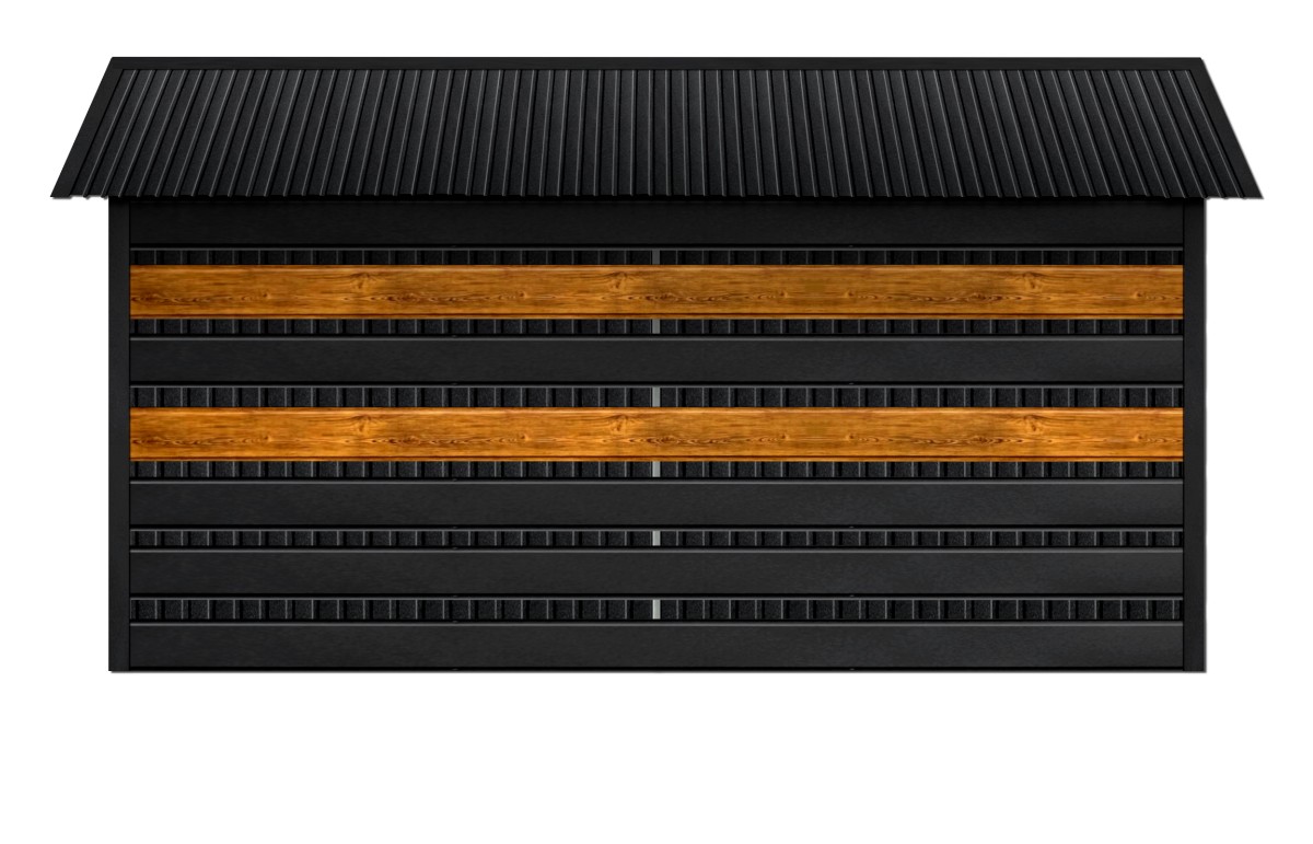 - panele wiaty w Systemie SMK w kolorze CZARNY MAT + 2 pasy paneli w kolorze drewnopodobnym SOSNA