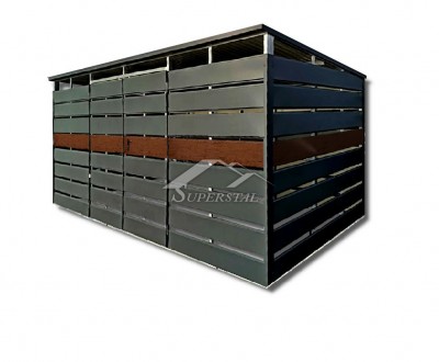 WIATA ŚMIETNIKOWA 5X2 z paneli poziomych szerokich z dodatkiem drewnopodobnym PARAMETRY WIATY: