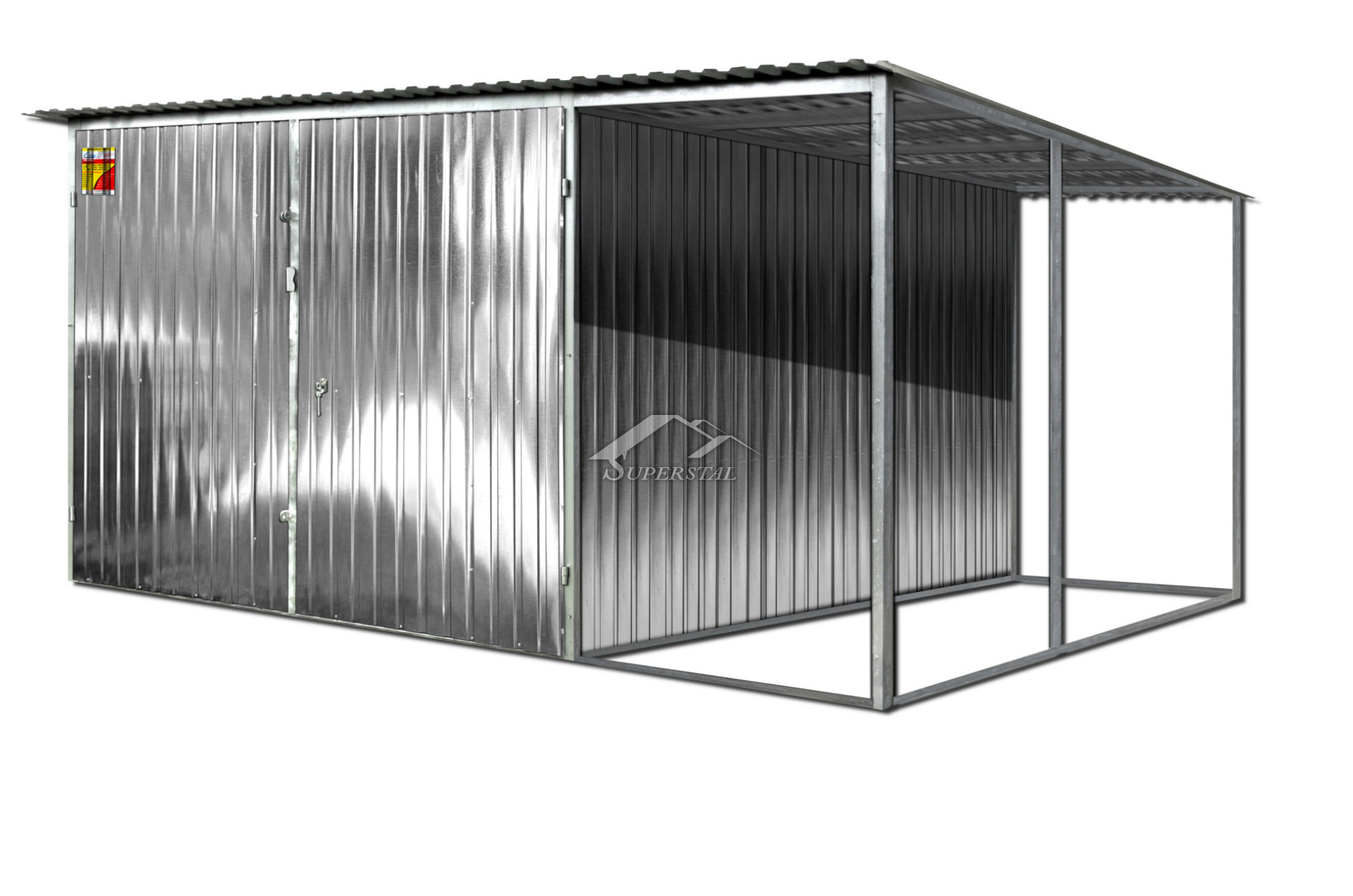 GARAŻ BLASZANY OCYNKOWANY 5X5 Z WIATĄ – SPAD DACHU DO TYŁU, BRAMA DWUSKRZYDŁOWAGaraż blaszany ocynkowany to proste i budżetowe rozwiązanie dla osób szukających wytrzymałego zadaszanie dla sowich pojazdów, sprzętu i pozostałych dóbr materialnych!