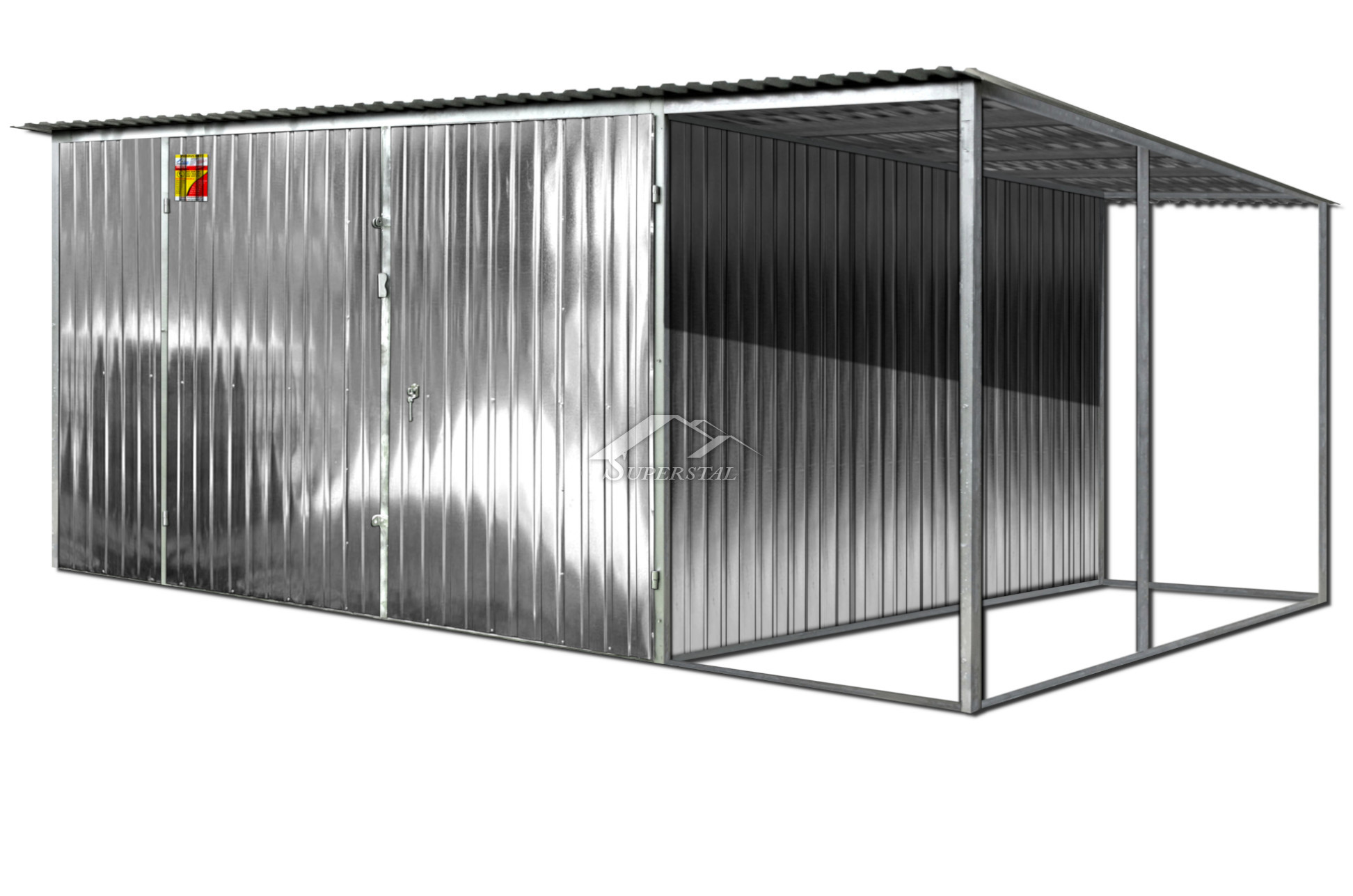 GARAŻ BLASZANY OCYNKOWANY 6X5 Z WIATĄ – SPAD DACHU DO TYŁU, BRAMA DWUSKRZYDŁOWAGaraż blaszany ocynkowany to proste i budżetowe rozwiązanie dla osób szukających wytrzymałego zadaszanie dla sowich pojazdów, sprzętu i pozostałych dóbr materialnych!