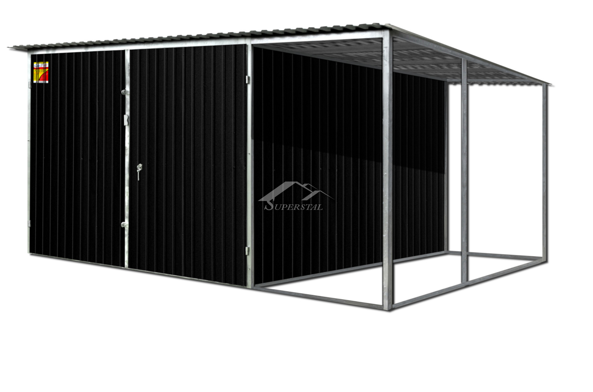 CZARNY GARAŻ BLASZANY AKRYLOWY 5X5 Z WIATĄ – SPAD DACHU DO TYŁU, BRAMA DWUSKRZYDŁOWA Garaż blaszany w wersji akrylowej to świetna propozycja dla osób, które cenią sobie budżetowe rozwiązania, zachowując przy tym powiew innowacyjnych rozwiązań!