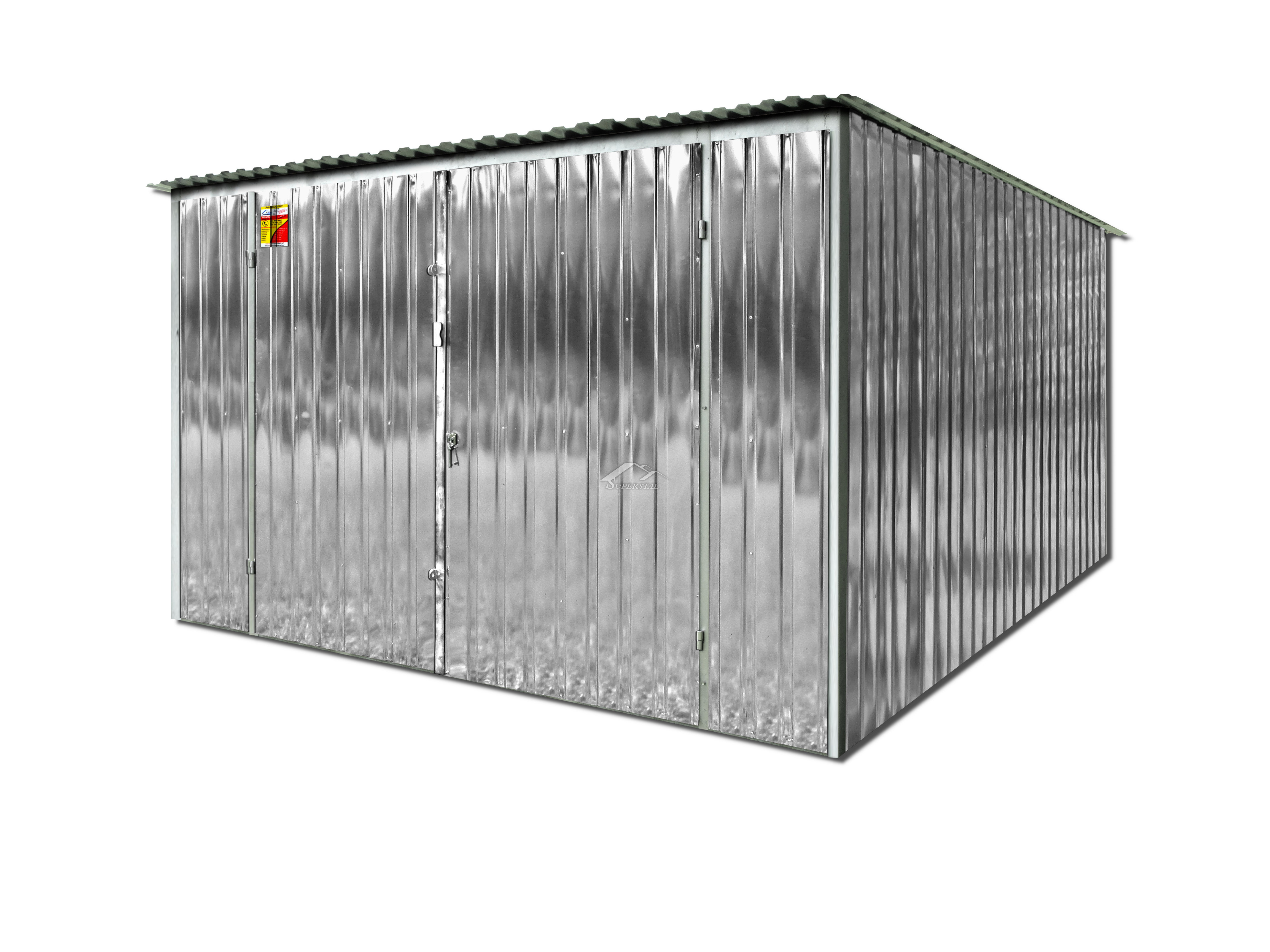 GARAŻ BLASZANY OCYNKOWANY 4X6 – SPAD DACHU DO TYŁU, BRAMA DWUSKRZYDŁOWA Garaż blaszany ocynkowany to proste i budżetowe rozwiązanie dla osób szukających wytrzymałego zadaszanie dla sowich pojazdów, sprzętu i pozostałych dóbr materialnych.