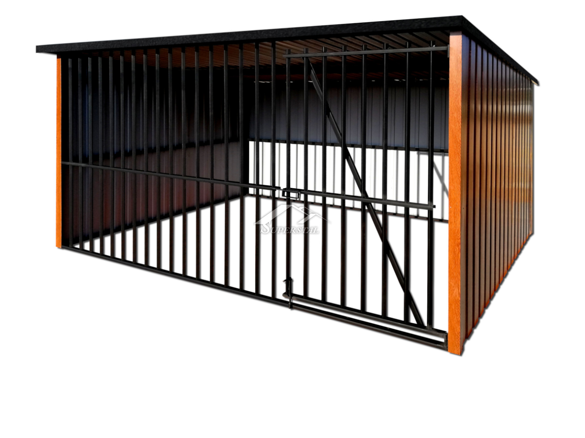 KOJEC DLA PSA 3X2 – KOJEC Z CZARNYCH PROFILI, ZABUDOWANY DREWNOPODOBNĄ BLACHĄ W KOLORZE ZŁOTY DĄB Szukasz idealnego kojca dla swojego pupila? Nie mogłeś lepiej trafić!