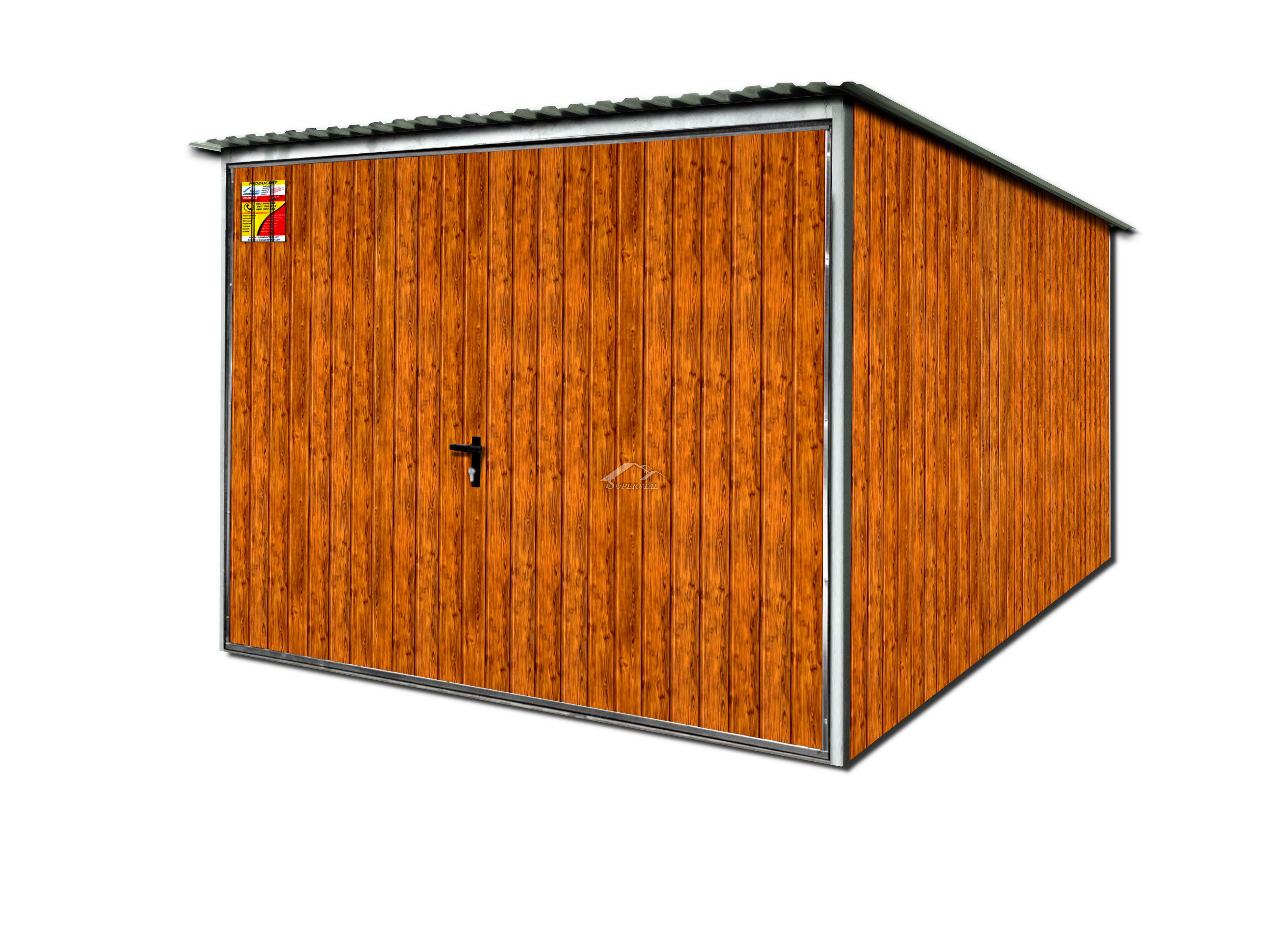 DREWNOPODOBNY GARAŻ BLASZANY 3X3 – SPAD DACHU DO TYŁU, BRAMA UCHYLNA Garaż blaszany w wersji drewnopodobnej to znakomite rozwiązanie dla miłośników natury i funkcjonalności produktów stalowych!