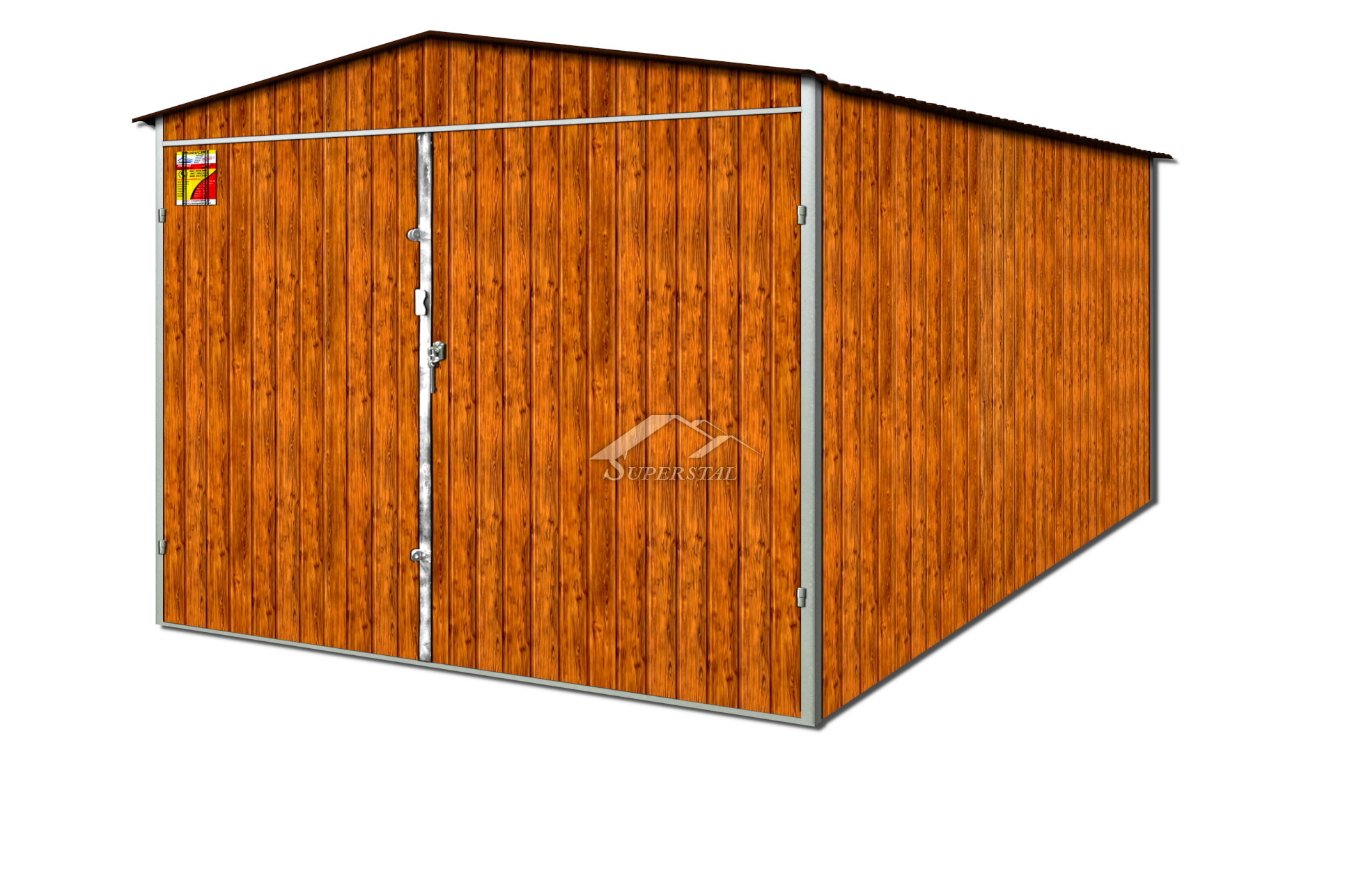 GARAŻ BLASZANY DREWNOPODOBNY 3X5 – DWUSPADOWY DACH, BRAMA DWUSKRZYDŁOWAGaraż blaszany w wersji drewnopodobnej to znakomite rozwiązanie dla miłośników natury i funkcjonalności produktów stalowych!
