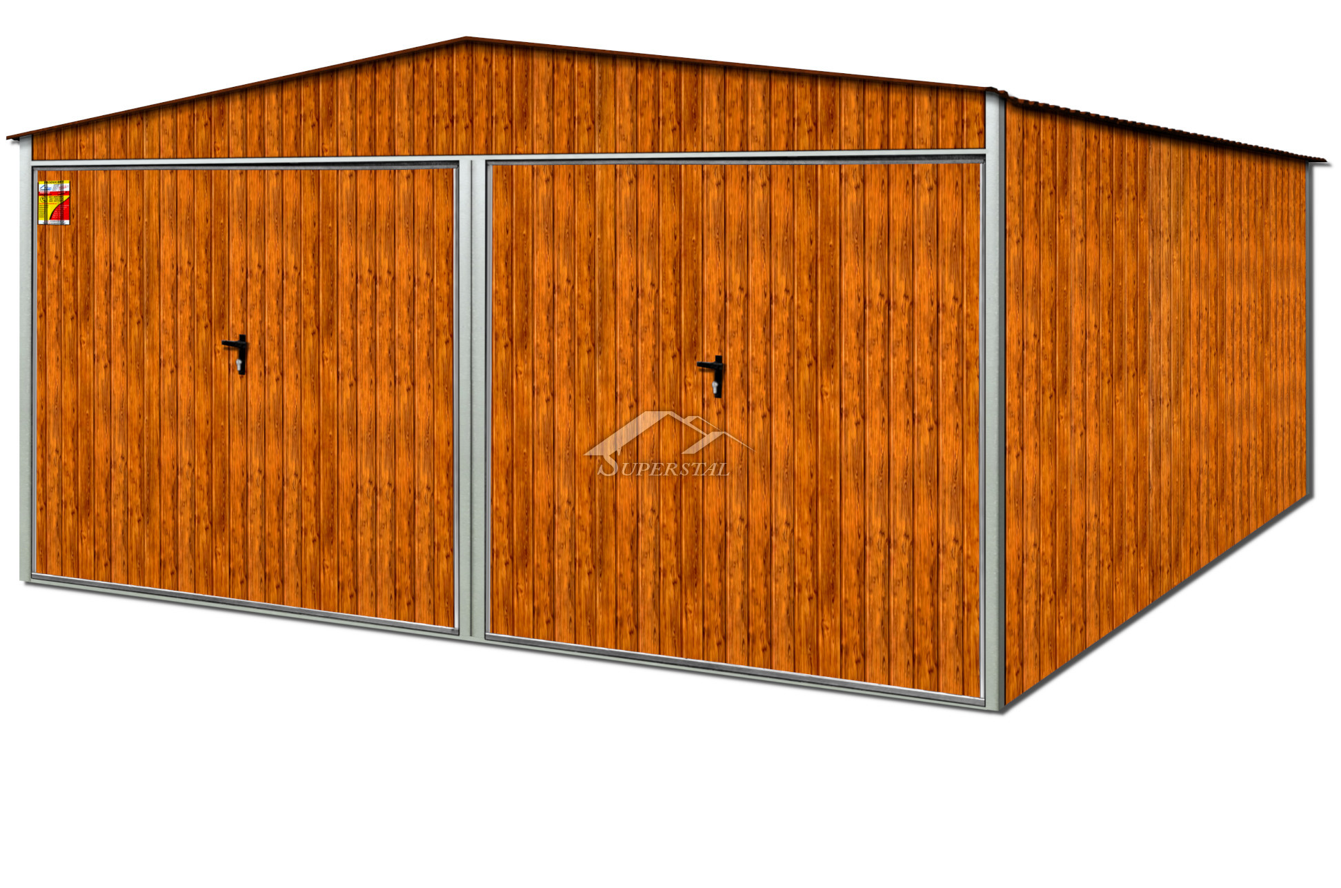 GARAŻ BLASZANY DREWNOPODOBNY 6X6 – DWUSPADOWY DACH, DWIE BRAMY UCHYLNEGaraż blaszany w wersji drewnopodobnej to znakomite rozwiązanie dla miłośników natury i funkcjonalności produktów stalowych!