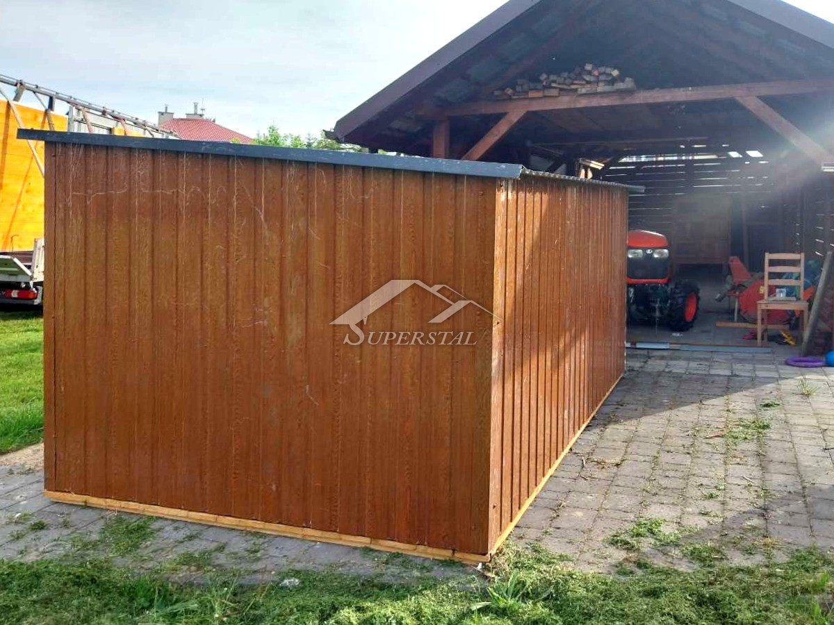 - ściany boczne oraz tylna zabudowane blachą drewnopodobną